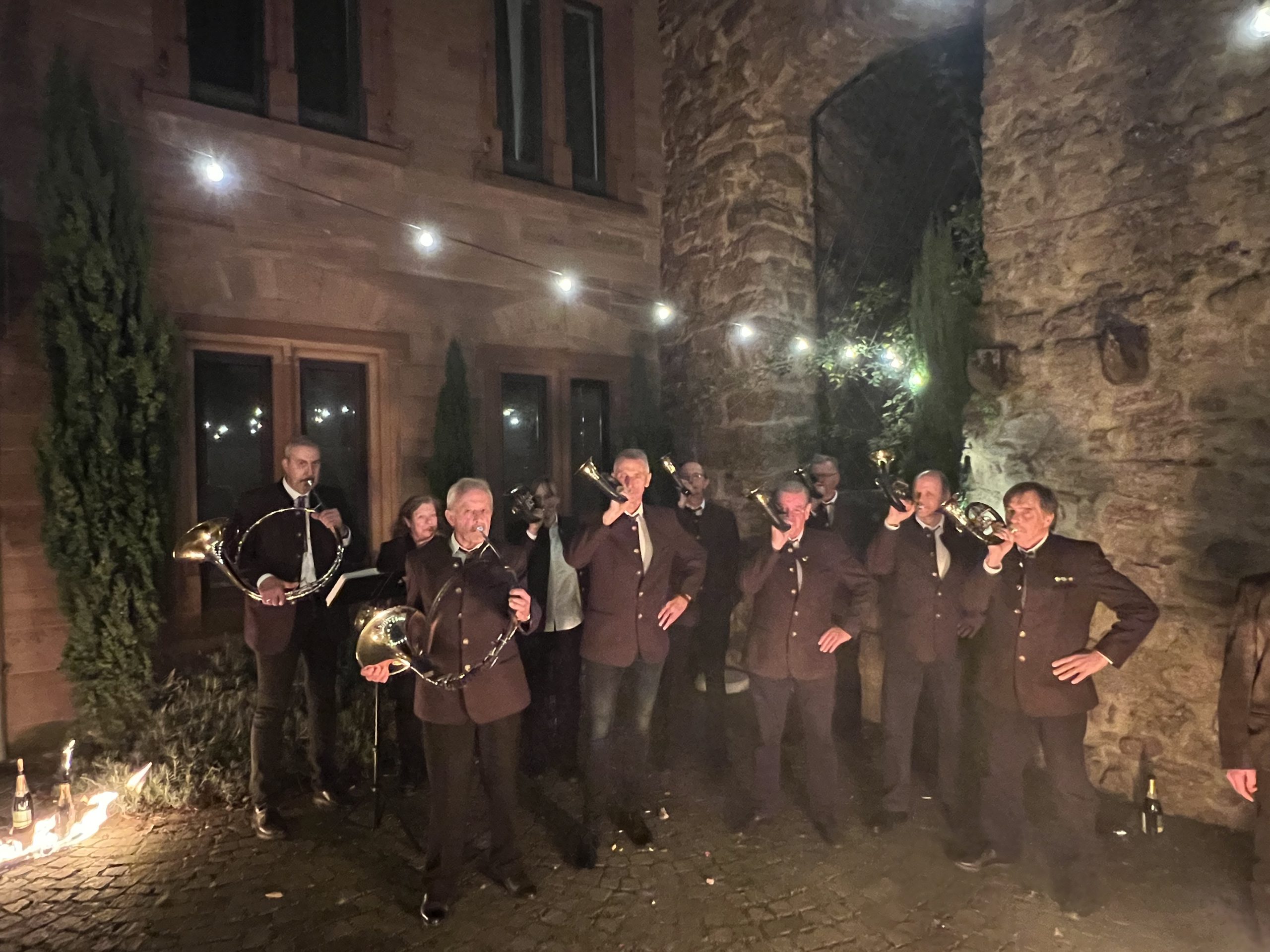 Baden-Baden / Altes Schloss, 11.10.2025: Wie schon seit vielen Jahren, umrahmten wir Bläser den jährlichen Ehrungsabend der Badische Jäger Kreisverein Rastatt / Baden-Baden e.V. – In diesem Jahr fand die Veranstaltung auf dem Schloss „Hohenbaden“ oberhalb von Baden-Baden in besonderer und stimmungsvoller Umgebung statt. Mit dem Signal „Jägerschlag“ wurden die Jungjäger in die jagdliche Praxis entlassen und die Jubilare für langjährige Treue mit der „Ehrenfanfare“ und einigen weiteren zum Anlass passenden Stücken geehrt.